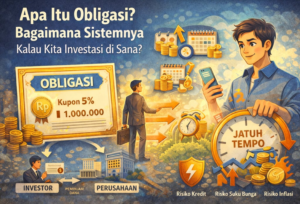 Obligasi adalah surat utang yang diterbitkan oleh perusahaan atau pemerintah yang bertujuan untuk mengumpulkan dana. Ketika kamu membeli obligasi, itu artinya kamu meminjamkan uang kepada penerbit obligasi (baik perusahaan atau pemerintah) selama jangka waktu tertentu. Sebagai imbalannya, penerbit obligasi berjanji untuk membayar kembali pokok utang (nilai nominal obligasi) dan memberikan bunga (kupon) sesuai dengan ketentuan yang disepakati.