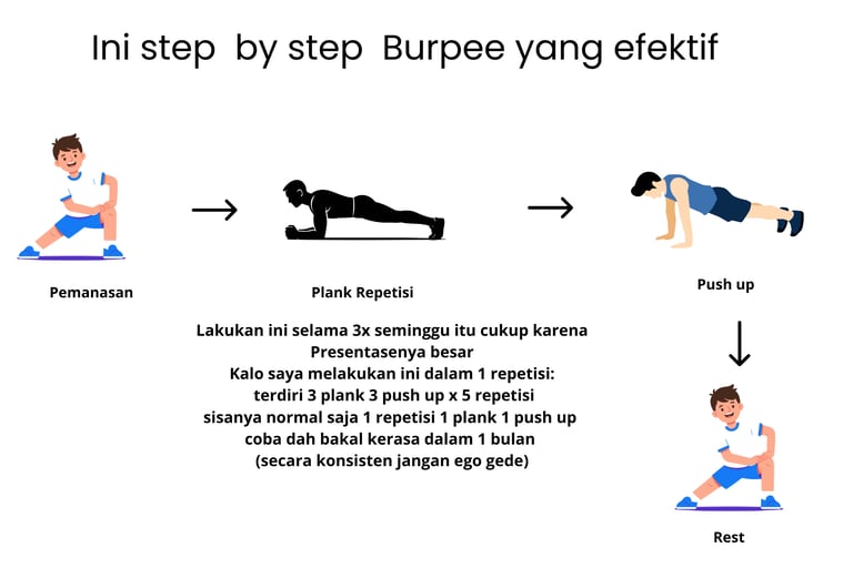 Panduan burpee untuk pemula agar aman dan tidak cedera. Pelajari teknik yang benar, jumlah repetisi ideal, dan tips latihan agar hasil maksimal.